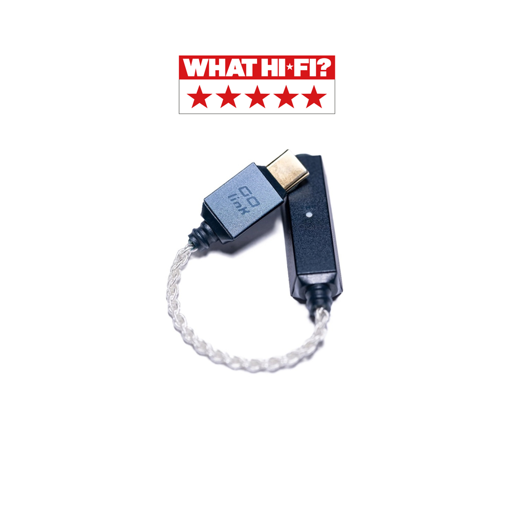 El GO Link 2 cuenta con un conector USB-C en un extremo y en el otro se encuentra el circuito del DAC y del amplificador de auriculares, ambos revestidos en una aleación de magnesio ligera y duradera. Su cable flexible de 6 cm permite un uso práctico, orientando el DAC/amplificador hacia el oyente y minimizando la tensión en el puerto USB conectado.