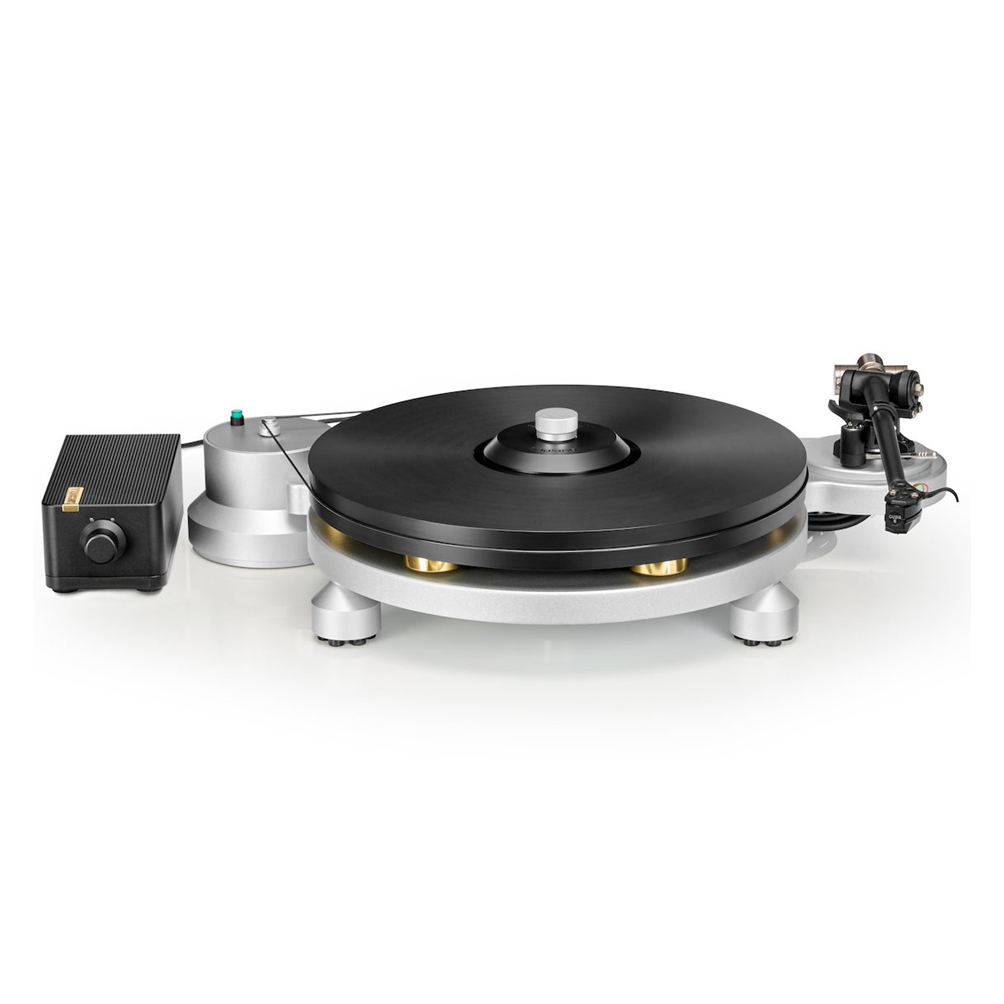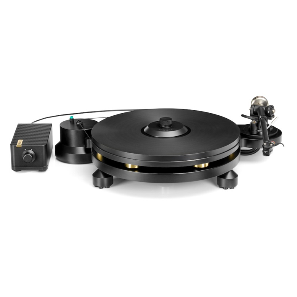 El sistema de motor de Revolv está diseñado para ofrecer una estabilidad y un silencio absolutos. La pesada carcasa del motor, independiente, es totalmente independiente del tocadiscos: su única conexión es la correa de transmisión. Esta separación física reduce drásticamente la transferencia de las vibraciones del motor a los sensibles componentes de reproducción, preservando los detalles musicales y la claridad.